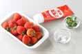 器にイチゴを盛り、コンデンスミルクをかけ、あればミントの葉を飾る。