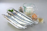 サンマは水洗いして水気を拭き取る。振り塩をして10分以上置いて身をしめ、出てきた余分な水分を拭き取る。(振り塩は手に塩を持ち、並べた魚の20~30cm位上から指の間を通して均等に塩を振り掛けることです)