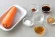 ニンジンが炒められ、油が回れば<調味料>を加え、煮汁がほとんどなくなるまで炒めあわせる。