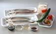 アジは尾から頭に向かってウロコを取る。盛りつけた時裏になる側(頭を右、腹を手前)からエラを取り、尾の付け根にある堅いウロコ状のゼイゴを尾側から頭に向かって削ぎ取る。裏側の腹に4cm位の切り込みを入れてワタを出し、きれいに洗う。火が通りやすいように、背びれの向こう面に切り込みを入れる。表側の身の厚い部分に飾り包丁を入れる。