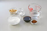 インスタントコーヒーを水に溶かし、黒みつも加え、混ぜ合わせる。