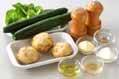 キュウリは両端を切り落として縦4つに切り、ジャガイモに合わせて切る。