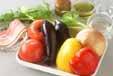 鍋にオリーブ油を熱し、玉ネギ、水気をきったナス、セロリ、パプリカ、ベーコンを炒め合わせる。