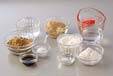 <タレ>ときな粉を4つに分け、各々竹串で団子を刺して、<タレ>ときな粉をつけながら食べる。
