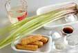 フキをゆでる。たっぷりの熱湯に、塩がついたままのフキを入れ、2~3分ゆでて水に取り、粗熱が取れれば、端から筋をむき、4cmの長さに切る。