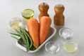 器にニンジン、サヤインゲンを盛り合わせ、<ドレッシング>をかけていただく。