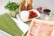○大根は皮をむき、せん切りにして冷水に放ち、パリッとすればザルに上げる。○貝われ菜は半分の長さに切り、大根と混ぜ合わせる。○プチトマトは水洗いしヘタを取り、2~4つに切る。○豚薄切り肉が長い場合は、4~5cmの長さに切る。