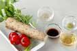 器に1の長芋を盛り<ワサビ酢>をかけ、プチトマトを添える。