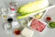 中華鍋にサラダ油を熱し、白ネギ、ショウガ、ニンニク、豆板醤を加え、香りが立てば豚ひき肉を加え、ポロポロになるまで炒めあわせる