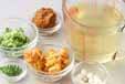 麩は水で柔らかく戻し、水気を絞る。