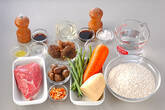 <調味料>は混ぜ合わせておく。