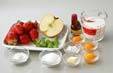 器にカスタードを入れイチゴとリンゴをのせ、粉砂糖をかけ、あればミントの葉を添える。