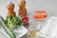 春雨は火を止めた熱湯に入れて1~2分置き、水に取ってよく洗う。水気をきって食べやすい長さに切る。