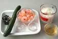 むきエビは背ワタを取り、塩を入れた熱湯でゆでてザルに上げ水洗いし、水気を切る。