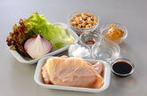 <ピーナッツソース>のピーナッツは細かく刻み、バット又は大きめのボウルに他の材料と混ぜ合わせる。