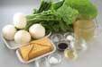三角厚揚げはザルに入れ、熱湯をかけて油抜きをし、食べやすい大きさに切る。