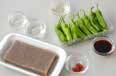 シシトウはサッと水洗いして、軸を切り落とし、斜め半分に切る。