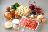 ボウルに合いびき肉、玉ネギ、パン粉、塩コショウ、ナツメグ、卵1個を入れ、粘りが出るまで手でよく混ぜ合わせる。