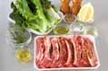 スペアリブはオリーブ油を全体にからめ、塩、粗引き黒コショウを振り掛ける。オーブンを220℃で20~25分に予熱しておく。