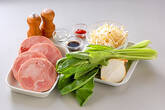 器に2のハムステーキをのせ、1の野菜を盛り合わせる。