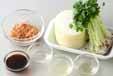 器にしっかり水気を切った大根を盛り、かつお節をかけ、<ドレッシング>をかける。