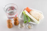 煮立てば白ネギ、エノキ、ニンジンを加える。再び煮立てば、火を少し弱めて2~3分煮る。塩、コショウで味を調えて火を止め、器によそう。