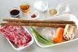 フライパンにゴマ油を強火で熱し、牛肉を炒める。色が変われば、水切りしたゴボウ、レンコン、ニンジンを加えて炒めあわせる。
