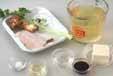 鍋にだし汁を入れ強火にかけ、煮立てば白身魚を加える。