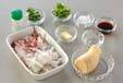 イカゲソはきれいに水洗いする。吸盤が固い場合は包丁を寝かせてこそげ落とし、食べやすい大きさに切る。固い部分は取って下さい。小イカの場合は足を持って胴からワタを引き抜く。胴は水洗いして軟骨を抜き取り、足は目の際で切り落としてくちばしを取って、水できれいに洗い水気を切る。