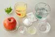 リンゴは皮をむき縦6~8つのくし切り、2切れは芯を取り、皮ごと薄切りにし塩水に放つ。残りは皮をむいてすりおろし+リンゴジュースで350mlにしておく。