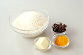 ターメリックを加えて炒め合わせ、炊飯器に入れる。
