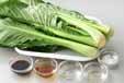 小松菜は根元を切り落としてきれいに水洗いし、水気をきって4cmの長さに切る。