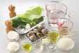 キャベツは粗いみじん切りにし、オリーブ油大さじ1でサッと炒める。菜の花は塩少々を入れた熱湯でサッとゆで、飾り用の菜の花を別にとりおいて、残りは1cmに刻む。玉ネギはみじん切りにする。砂だしハマグリは、殻と殻をこすりあわせるように、きれいに洗い、ザルに上げる。<スープ>はひと煮立ちさせ、固形ブイヨンを煮溶かしておく。