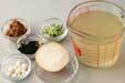 鍋にだし汁を入れて強火にかけ、煮立てば玉ネギを加え玉ネギが透明になるまで6~7分煮る。