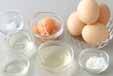 卵を割りほぐし、<調味料>を加えてよく混ぜ合わせる。