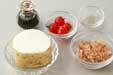 かつお節をのせ、しょうゆをかける。プチトマトを添え、混ぜながらいただきます。