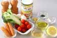 プチトマトは水洗いし水気をきり、ヘタを取って縦に2~4等分に切る。