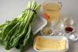 青菜は特に根元をきれいに水洗いし、熱湯でゆでて水に取る。粗熱が取れれば根元を切り落とし、3~4cmの長さに切る。