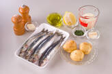 イワシは頭を落とし、腹を斜めに切ってワタを出し、きれいに水洗いする。手開きにして、腹の小骨は包丁ですき取る。両面に塩コショウを振っておく。