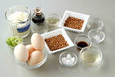 卵液に納豆、刻みネギを加え、軽く混ぜ合わせる。