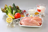 鶏むね肉は1枚を半分に切り、身の厚い部分には切り込みを入れ、塩、レモン汁をからめて10分位なじませる。混ぜ合わせた<つけダレ>に漬け込み、15分以上置く。
