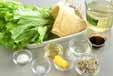 青菜は根元を少し切り落とし、きれいに水洗いして4cmの長さに切る。