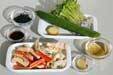 エビの背ワタをとり、塩ゆでして水に取り、粗熱が取れれば皮をむき、大きい物は2~3等分に切り、同様に和えても、美味しいエビの酢の物が出来ます。<合わせ酢>に白みそ、練りからしを合わせて、みそ仕立てにしても美味。