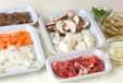 鍋にゴマ油を強火で熱し、豚肉が白っぽくなるまで炒める。大根、ニンジン、ゴボウ、里芋を炒めあわせ、シイタケ、コンニャクを更に炒めあわせる。