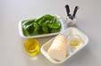 バジルは軸を取り、細切りにする。