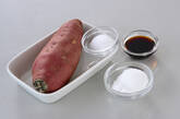 鍋にサツマイモを並べ、ひたひたの水、砂糖、しょうゆを加えて落とし蓋をし、弱めの中火で煮汁が少なくなるまで15分くらい煮る。