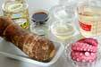 京芋は皮をむいて水に放ち、ぬれたままラップで包み、電子レンジで5~6分加熱する。粗熱が取れれば一口大に切る。