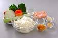 鶏ひき肉の色が変わったらニンジン、ピーマンを加えて、合わせた<調味料>を加えて全体にからめる。ご飯を加えてパラパラに炒め合わせる。