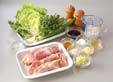 鍋に水1200ml、白ネギの緑の部分、ショウガ、酒を入れて火にかけ、煮立てば鶏肉を加え、20分煮る。