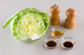 レタスは手で食べやすい大きさにちぎり、冷水に通してシャッキとすれば、ザルに上げる。